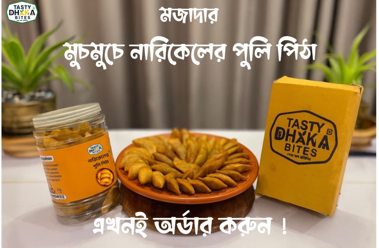 নারিকেলের পুলি পিঠা মানেই শীতের আবহে ঘরের উষ্ণতা আর ঐতিহ্যবাহী বাঙালি স্বাদের পরিপূর্ণতা। আমাদের নারিকেলের পুলি পিঠা তৈরি করা হয় একদম ঘরোয়া পদ্ধতিতে, শতভাগ তাজা উপকরণ ব্যবহার করে—যাতে প্রতিটি কামড়ে থাকে পরিচিত সেই চেনা স্বাদ ও মুচমুচে টেক্সচার।