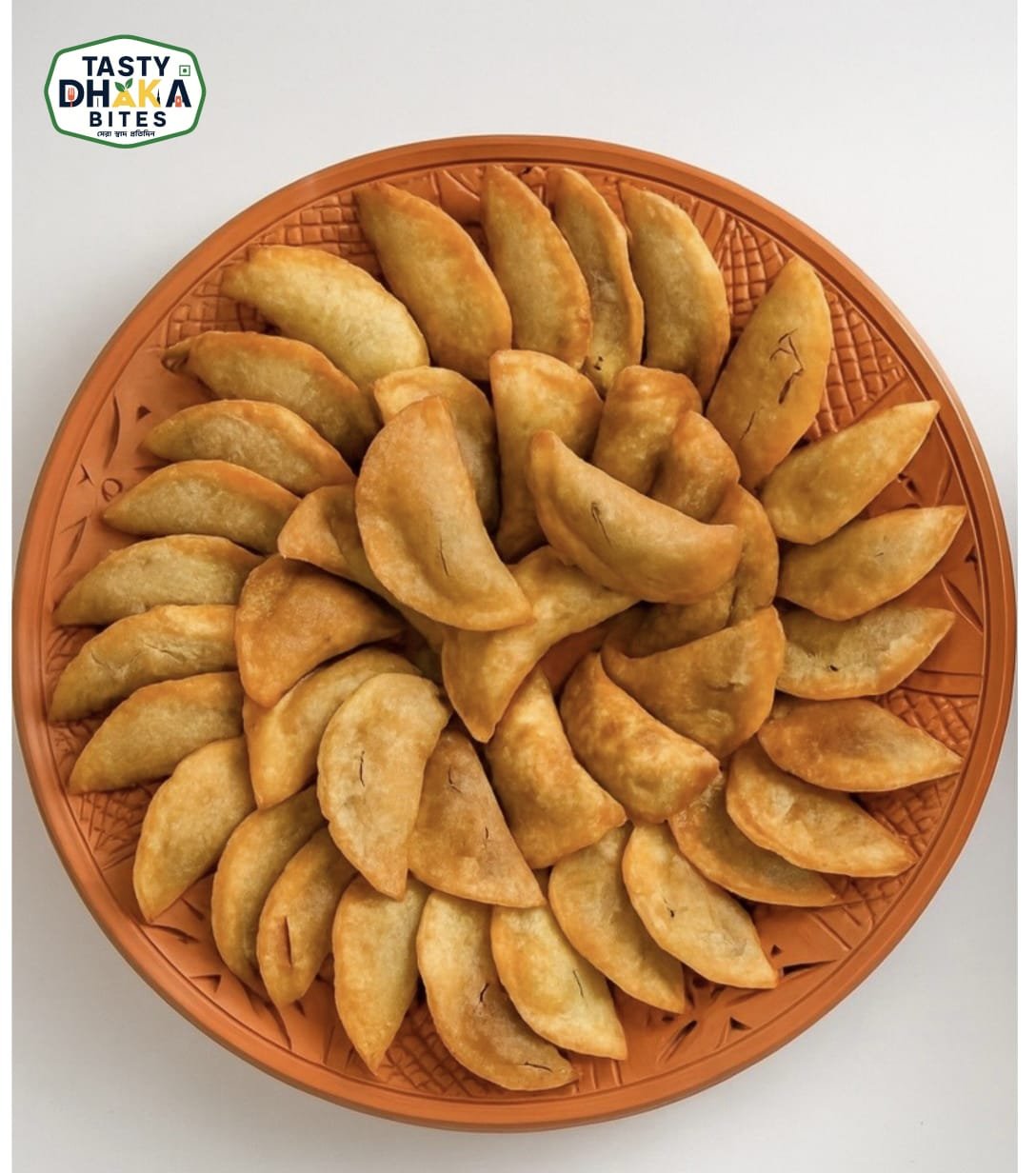 বাইরের আবরণটি মুচমুচে, যা ভেতরের পুরের সঙ্গে মিলেমিশে এক অনন্য স্বাদের অভিজ্ঞতা দেয়।